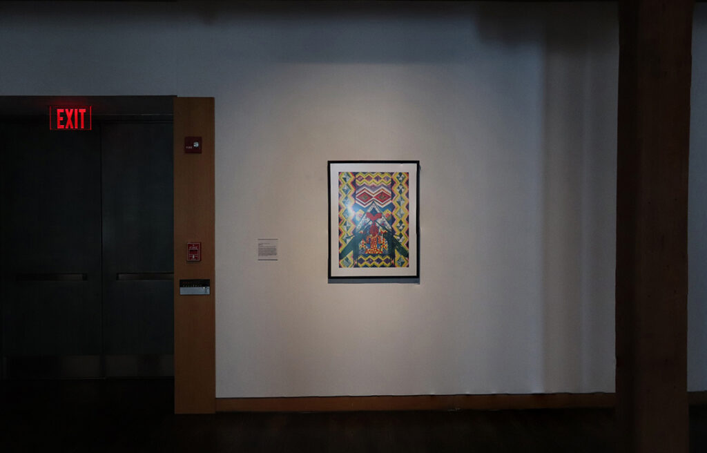 Angular bolts of color zig and zag around the border of James Phillips’s lithograph. Phillips draws inspiration from the aesthetics and metaphysics, or meaning, of the patterns and colors of west African kente cloth, a fabric originally produced for royalty. Weavers of kente cloth use strip looms to produce narrow bands of cloth before joining them together by hand. The geometric patterns that inspired Phillips are produced by alternating different colored thread in the warp and weft of the loom. A member of the African Commune of Bad Relevant Artists (AfriCOBRA) and the Weusi Artist Collective, Phillips connects to the creative traditions of the African diaspora through his flat aesthetic characterized by bold outlines, blocks of color, and flat perspective.